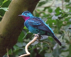 Photos by Francesco Veronesi (fruitcrow) (CC BY-SA 2.0) and Greg Hume (spangled cotinga) (CC BY-SA 3.0).
